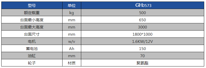 冠航牌電動(dòng)升降平臺(tái)規(guī)格參數(shù)