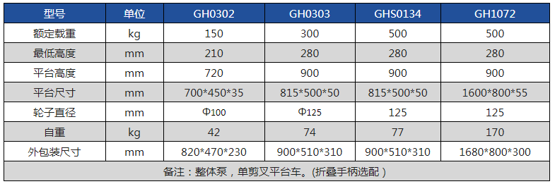 冠航牌小型手動(dòng)單剪液壓升降平臺(tái)車貨物搬運(yùn)車